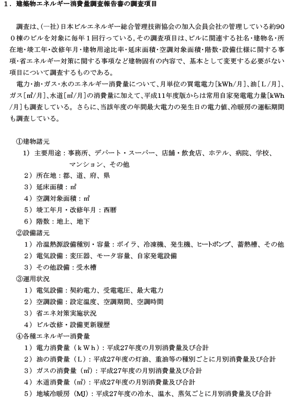今年度平成28年度の調査報告は、平成27年度のエネルギー消費量が調査対象となる。