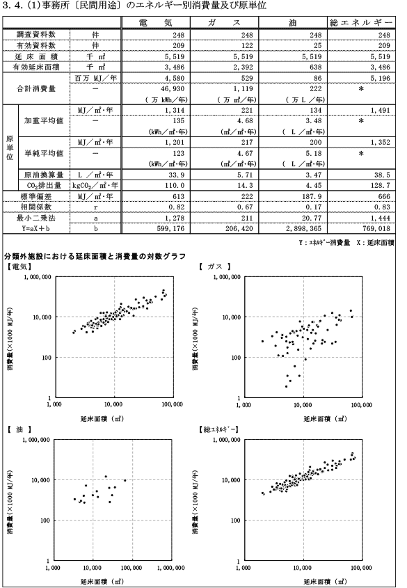 3.4.(1)事務所[民間用途]のエネルギー別消費量及び原単位