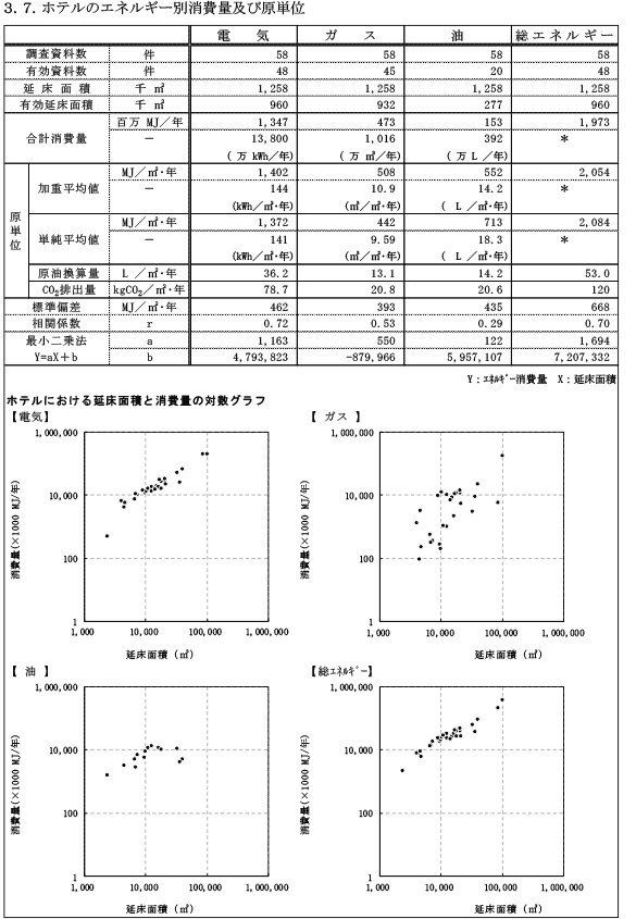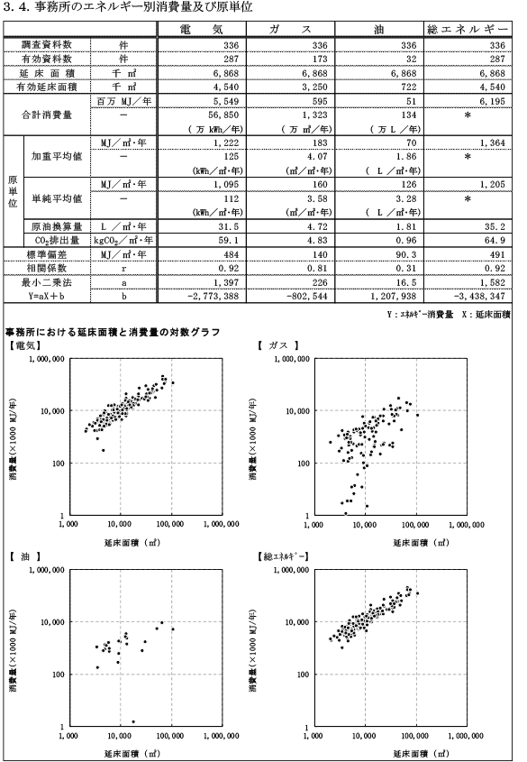 3.4.(1)事務所[官庁用途]のエネルギー別消費量及び原単位