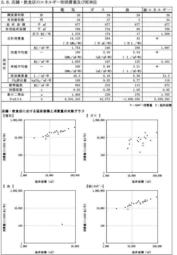 3.6.店舗・飲食店のエネルギー別消費量及び原単位