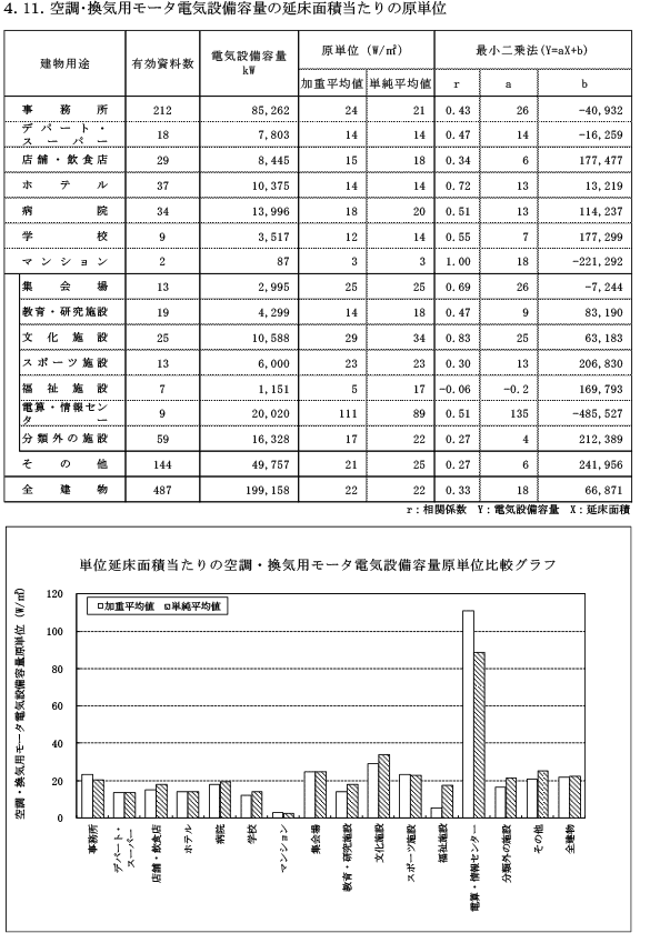 4.11.空調・換気用モータ電気設備容量の延床面積当たりの原単位
