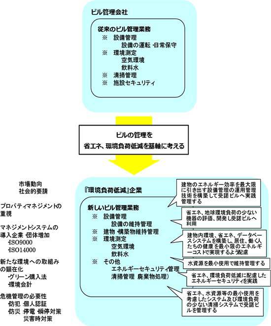当時、長期にわたる景気の低迷、ビル建設の鈍化、不動産証券化の進展などの影響を受け、ビル管理コストは圧迫され、ビルメンテナンス業の経営は極めて厳しい状況にありました。こうした状況下においてビル管理会社各社も不当な価格競争に陥りやすく、品質の低下を招いていました。特に建物所有者に対しては、単に価格だけの評価ではなく、ビル管理事業者の持つ技術力・提案力・マネジメント力を適正に評価した結果を提供することによって、顧客の資産を長持ちさせ単に価格が安いだけではなく真にコストパフォーマンスの良いビル管理事業者、また顧客の行う環境負荷低減のための活動を支援できるビル管理事業者を選定できる仕組みを提供することが狙いでした。