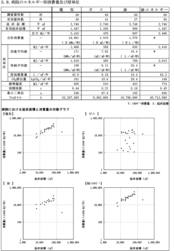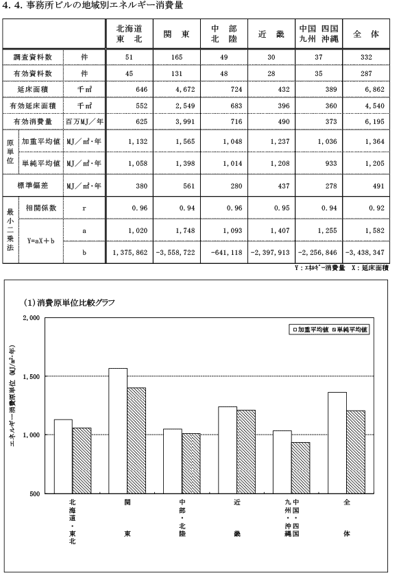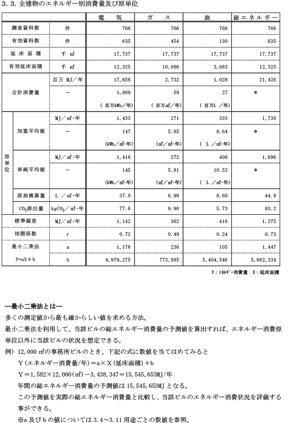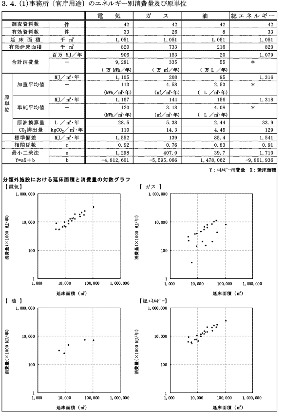 3.4.(1)事務所[官庁用途]のエネルギー別消費量及び原単位