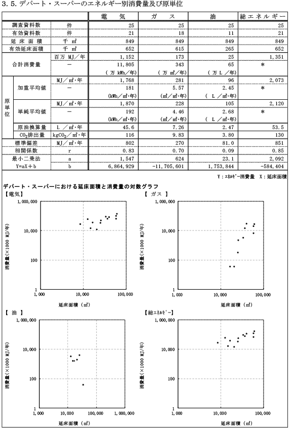 3.5.デパート・スーパーのエネルギー別消費量及び原単位