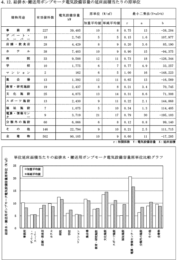 4.12.給排水・搬送用ポンプモータ電気設備容量の延床面積当たりの原単位