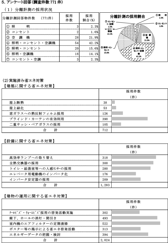 今回の調査では電力使用制限令の発令がない年度で電力需給が安定しているため、無理な節電対策をせず、執務室の環境を保持しながら省エネ対策を行い、併せて設備改修等が実施された結果である。